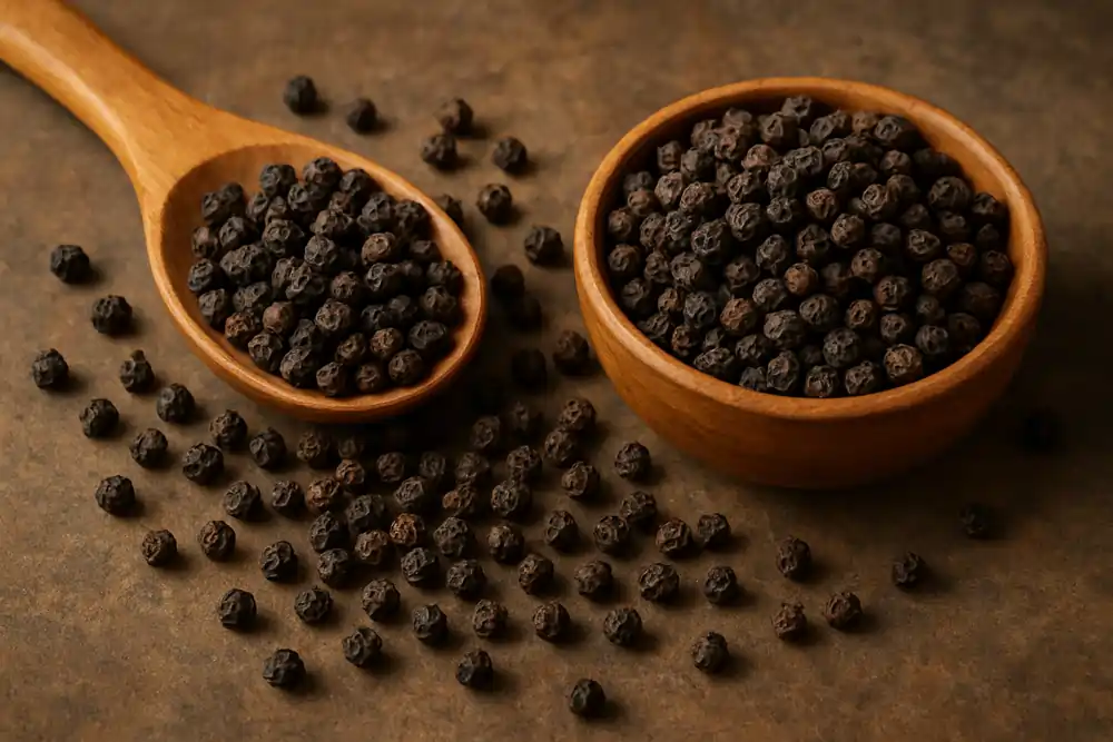 Чёрный перец горошком — одна из самых древних и востребованных специй в мире. Его называют «королём специй» не только за пикантный вкус и аромат, но и за целебные качества, которые высоко ценятся как в традиционной, так и в народной медицине. Источник натурального алкалоида пиперина, перец оказывает мощное воздействие на пищеварение, обмен веществ и иммунную систему.